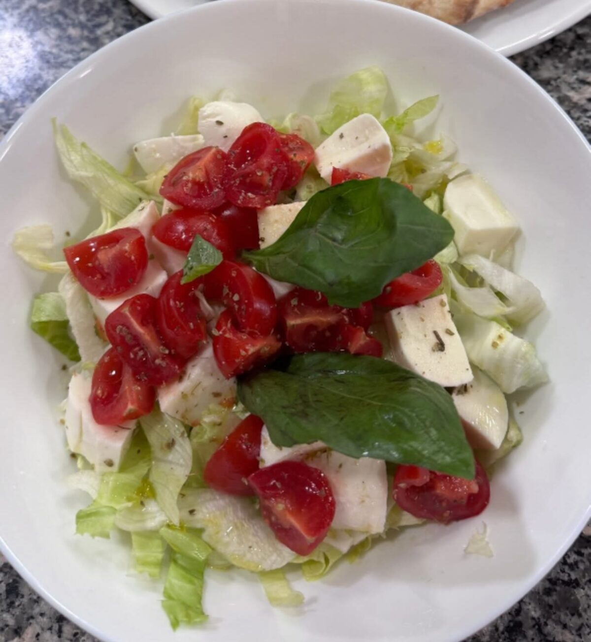 pomodorini, ciliegine di mozzarella, basilico, focaccina